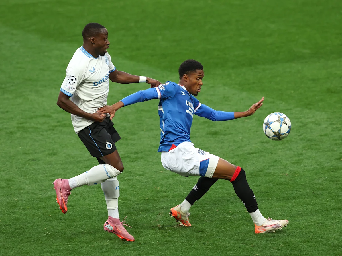 Club Brugge stunned Rangers with a blistering first-half performance in their Champions League play-off first leg at Ibrox, racing into a 3–0 lead inside 20 minutes.
