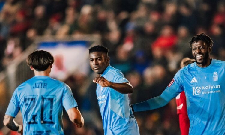 Taiwo Awoniyi scored his second goal of the season in Nottingham Forest’s two-all draw away at Exeter in the FA Cup fourth round.