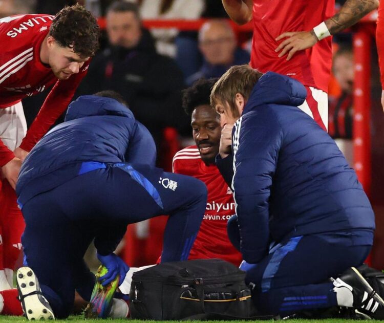 Ola Aina sustained an injury in Nottingham Forest’s narrow win over Manchester United at the City Ground on Tuesday night.