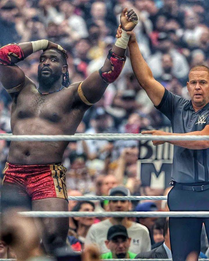 Making his WrestleMania debut, the Nigerian-born star took control early and never let go. Lesnar’s usual intensity showed in flashes, including an F-5, but it did little to slow Femi, who absorbed the pressure and responded with greater force.