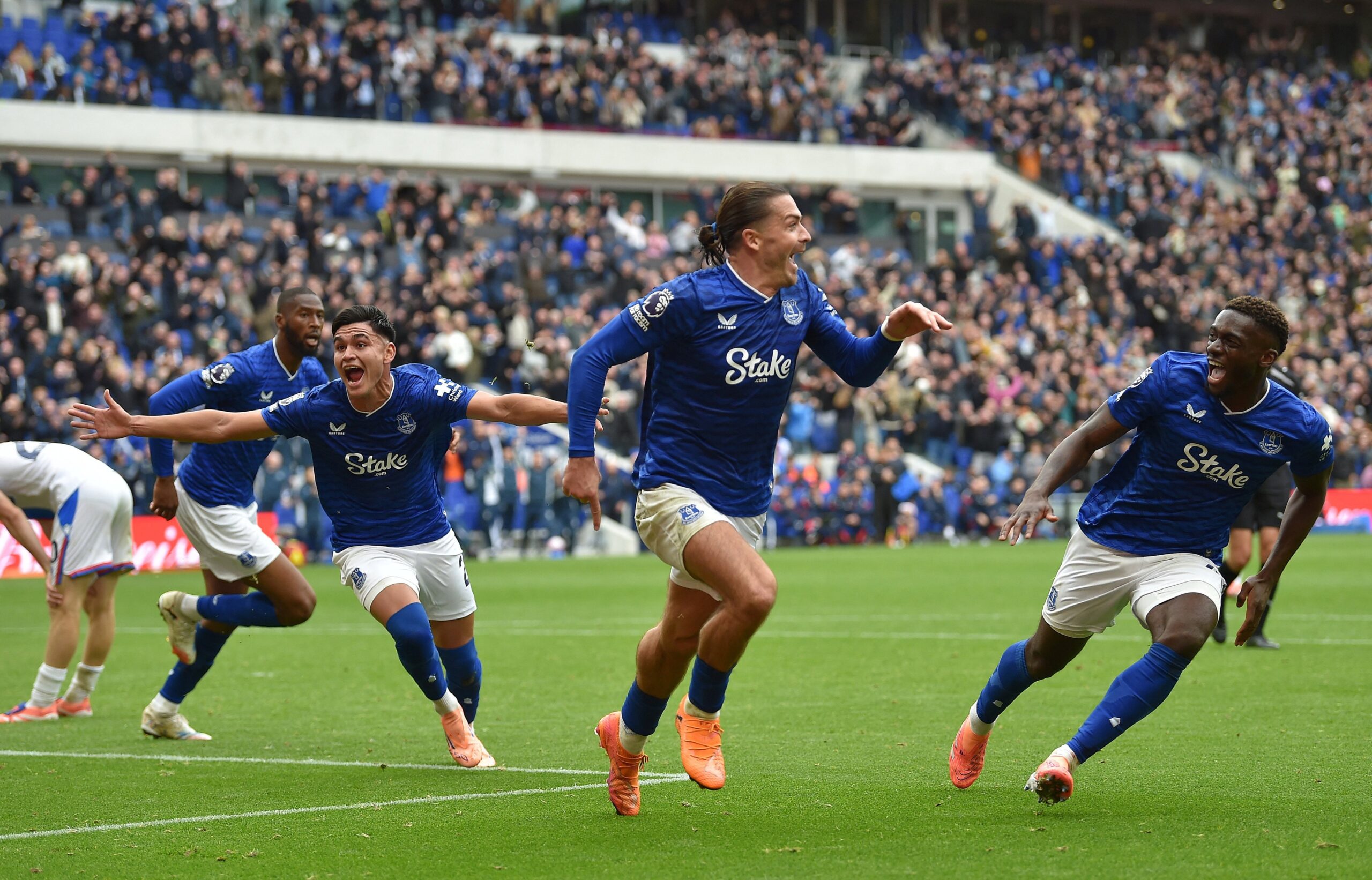 At Goodison Park, Everton stunned Crystal Palace with a 93rd-minute winner from Jack Grealish, ending Palace’s remarkable 19-game unbeaten streak.
