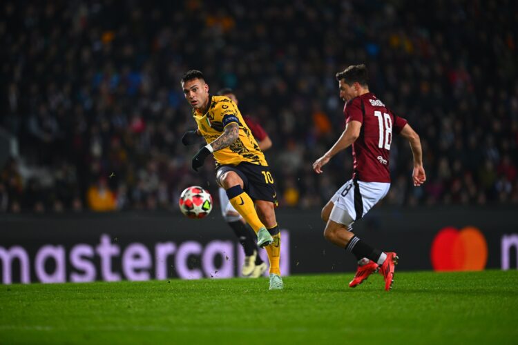 While Lautaro Martinez wasted a glorious effort, Sparta Prague’s goalkeeper Peter Vindahl pulled off a brilliant save to deny Davide Fratessi’s strike at goal.