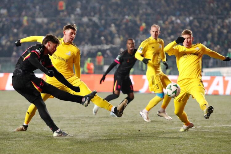Astana did grab one back before the break as forward Marin Tomasov showed fine footwork to dribble into the opposition penalty box before picking out the top-left corner of Filip Jørgensen’s net.